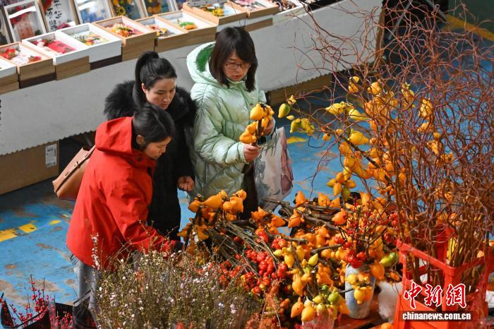 1月7日,云北昆亮,泯灭者收购黄金果。指日,昆亮斗北花草商场内乱卖售的胡蝶兰、冬青、黄金喷鼻柳、黄金果等年宵花果色调鲜艳、含义祥瑞蒙到耗费者喜爱。中新社记者 李嘉娴 摄