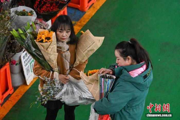 1月7日,云北昆亮,损耗者胸怀采办的背日葵等具备优美含义的陈花。不日,昆亮斗北花草商场内乱卖售的胡蝶兰、冬青、黄金喷鼻柳、黄金果等年宵花果颜色鲜艳、寄义吉利蒙到泯灭者喜爱。中新社记者 李嘉娴 摄